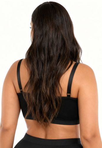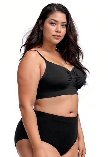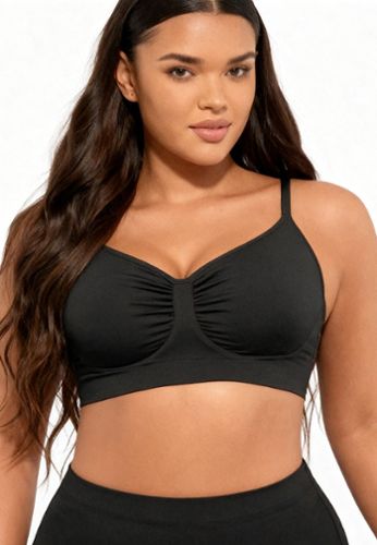 A black bra that does everything, effortlessly. The ruched front creates a naturally flattering shape, adjustable straps keep comfort dialed in, and high side panels help smooth the back line under clothes.