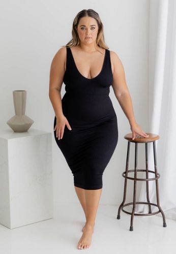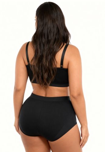 A black high-waist brief designed to sculpt without feeling restrictive. Full bum coverage, a high-rise fit that hugs in the right places, and a stay-put feel: no rolling, no ride-up, no drama. Made in a 4-way stretch fabric that feels luxe and moves with you.