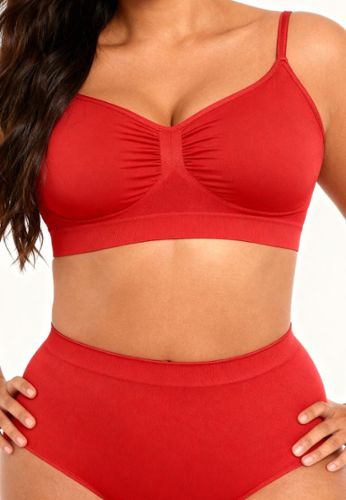 A red bra that feels like an everyday essential, but looks anything but basic. The ruched front creates a naturally flattering shape, adjustable straps keep comfort in check, and high side panels help smooth the back line under clothes.